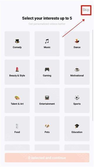 1、首先在007下载kwai快手国际版,点击进入,一开始是喜好设置,随意选择即可,不想选也可以点击右上角来跳过
