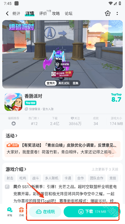 3、点击游戏图标,再往下滑动屏幕,就能游戏的具体介绍和更新内容。