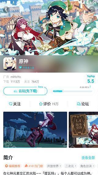 从测试版到正式版都能在此处体验。TapTap汇集数以千计优质手游,更有游戏官方进行入驻,玩家在taptap上面可以第一时间了解到游戏的更新,以及活动。用户在还可以通过在taptap上面签到,获得游戏官方给予的奖励。