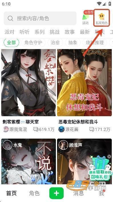 用户们也可以点击首页右上角的“私密角色”按钮