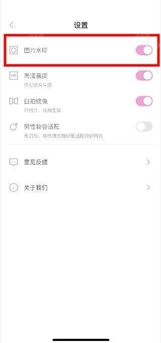 2、来到设置页面,我们会看到图片水印,直接滑动关闭,就可以去掉水印了。