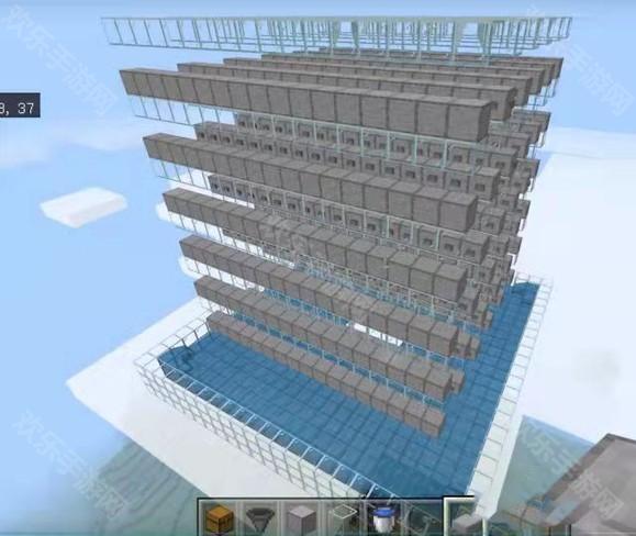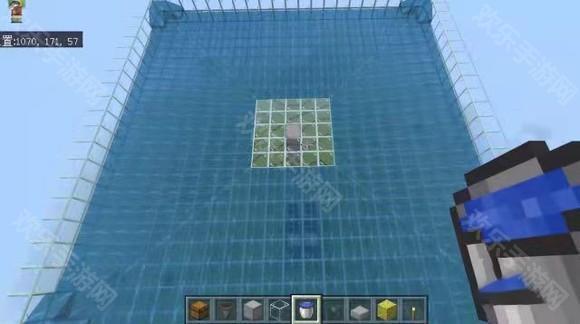 2、之后在Y坐标为158格的地方建造一个23×23的平台,平台四周有两格高的围墙,四周放水冲刷怪物,需要注意的是要从角落数第三格开始放水,不然会形成无限水,中间的洞口是让怪物掉下去的。
