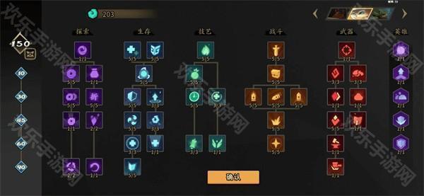 【天赋】系统分为探索、生存、技艺、战斗和武器五个通用分支,并且每位英雄都有自身专属的天赋成长方向。每个分支的成长进阶都能为侠士们的探索闯关带来一定的辅助和增益。
