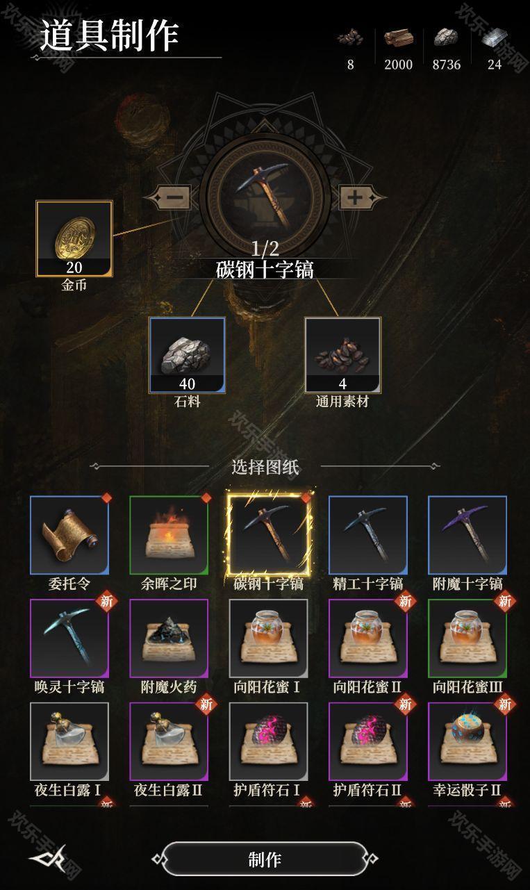 升级铁匠铺会获得图纸,就可以制作镐子啦。制作镐子所需的通用素材可以在主线和商店中获得哦!