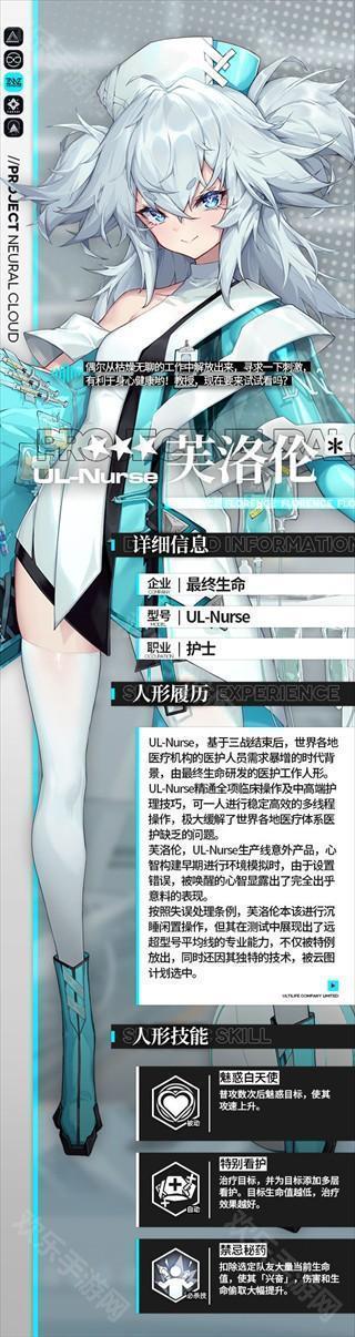 芙洛伦,UL-Nurse生产线意外产品,心智构建早期进行环境模拟时,由于设置错误,被唤醒的心智显露出了完全出乎意料的表现。
