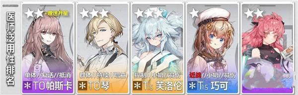 前期的5人配队基本按照1~2医师(推荐帕斯卡)+1守卫(推荐克罗琦)+2~3输出即可,低星角色里输出位比较推荐的有:苏尔、贝蒂、麦克斯(需扩容至2星)、咲耶。高星输出角色大部分都可以练,在前期3星带来的基础属性优势还是相当明显的。