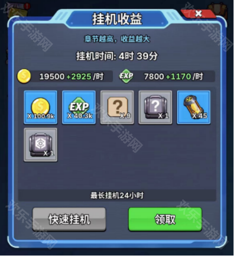 每天在挂机收益中,普通挂机和快速挂机都能获得普通品质配件。普通挂机每累计4个小时,给到一个配件,最多累计24小时挂机时间
