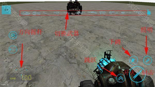 4、默认武器可移动物体,选择需要移动的物体后,长按开火键锁定后,在一直长按的状态下滑动开火按钮;