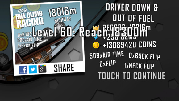 3、驾驶赛车挑战在山路上,请注意灵活控制赛车的速度,不要翻倒,不断前进,驾驶更远的距离。
