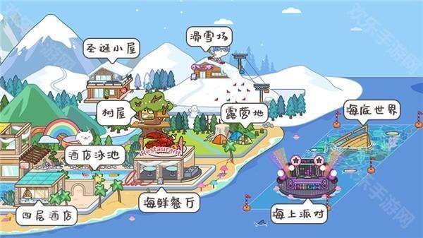 8、圣诞小屋、滑雪场、树屋、露营地、海底世界、酒店泳池、四层酒店、海鲜餐厅、海上派对;