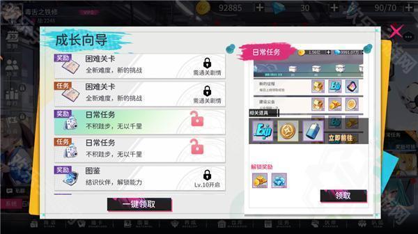 1、游戏提供了便捷简单的自动战斗和倍速功能,前期推图时可有效利用,游戏还有派遣角色进行都市巡逻获取资源的玩法。