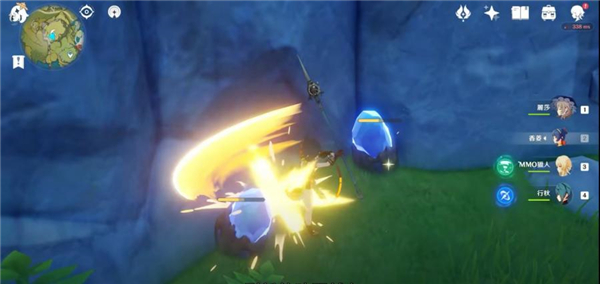 在挖稀有矿时,如果你的队伍没有大剑(双手剑)角色,换角色又很麻烦,用单手剑或者长枪又要打很久,这时你可以利用下落攻击,这样通常2-3次就可以击碎矿石,虽然《原神》不能在平地跳跃起直接下落攻击,但是矿石通常都出现在靠边的地方或者有斜度的地方所以一定有办法使用下落攻击。