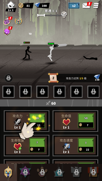 3、下面就是强化自己的属性,战胜更多的敌人。