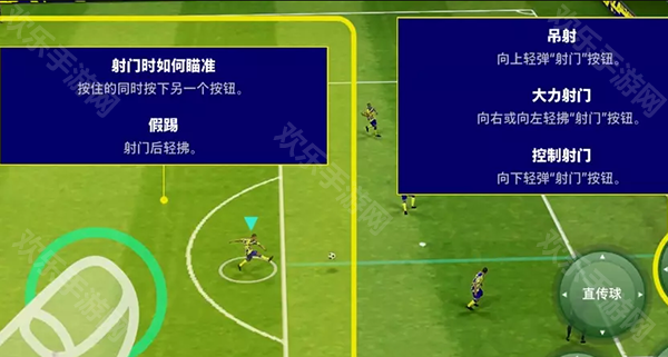 正常射门就按照图中的说明来,假射也是十分实用,新玩家可以多多尝试,流畅之后就会是你杀死比赛的利器。