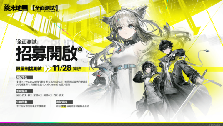 全球游戏发行商 GRYPHLINE 官方正式宣布,《明日方舟:终末地》「全面测试(Beta Test II)」即日起开放招募,并将于 PC(Windows)与手机平台(iOS/Android)同步展开。各位管理员可前往官方网站填写招募问卷,参与资格筛选。若获得测试资格,通知信将发送至用于注册的 GRYPHLINE 帐号所绑定之电子信箱。